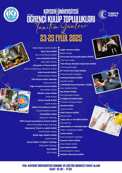 Sağlık Bilimleri Fakültesi Çocuk Gelişimi Bölümü 1. Sınıf öğrencilerine yönelik uyum etkinliği çerçevesinde, Üniversitemiz Kongre ve Kültür Merkezi Fuaye Alanı içerisinde öğrenci kulüp toplulukları tanıtım günleri etkinliğine katılım sağlanmıştır.